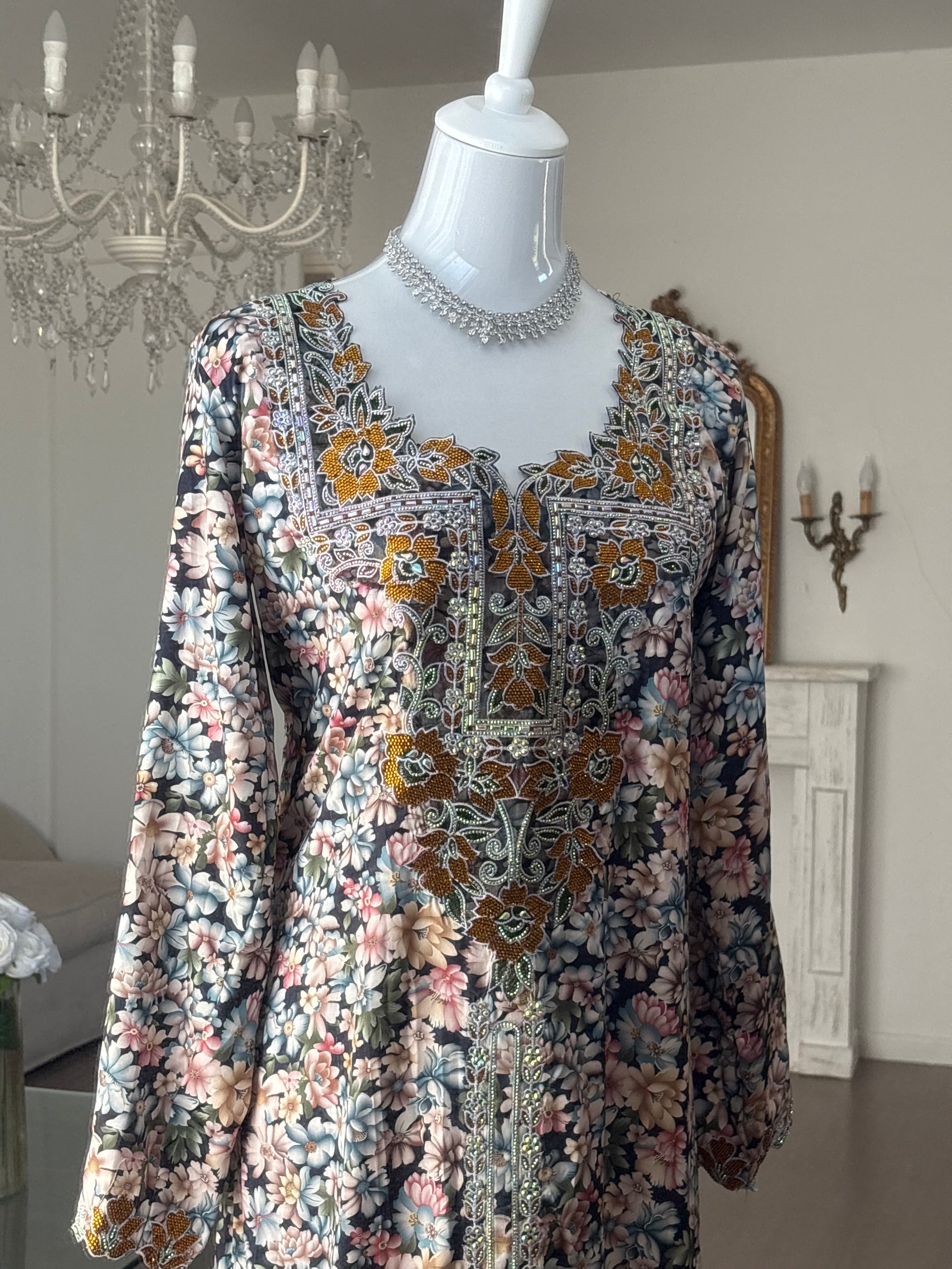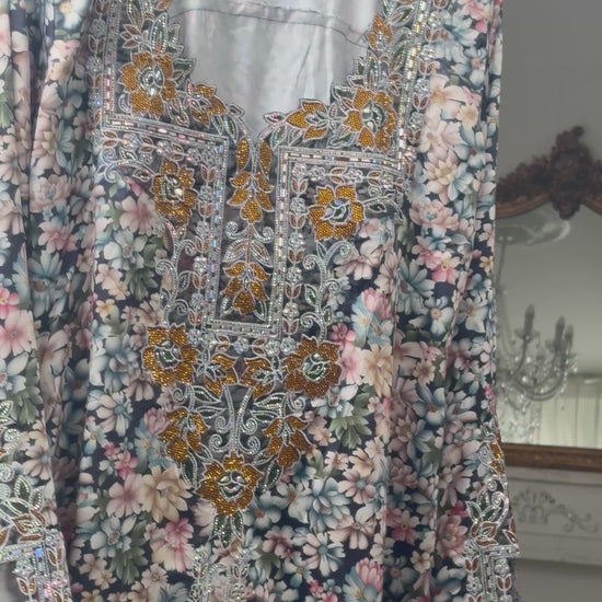 Découvrez l'élégance à son apogée avec nos Mukhawars ajustables . Confectionnés à partir d'un tissu en soie luxueux, ces modèles se distinguent par une qualité exceptionnelle et des finitions soignées. Chaque pièce est ornée de broderies faites à la main, offrant un design riche et raffiné. Les détails minutieux sur les manches et le col ajoutent une touche de sophistication, faisant de ces Mukhawars le choix parfait pour des occasions spéciales ou pour un style somptueux au quotidien.